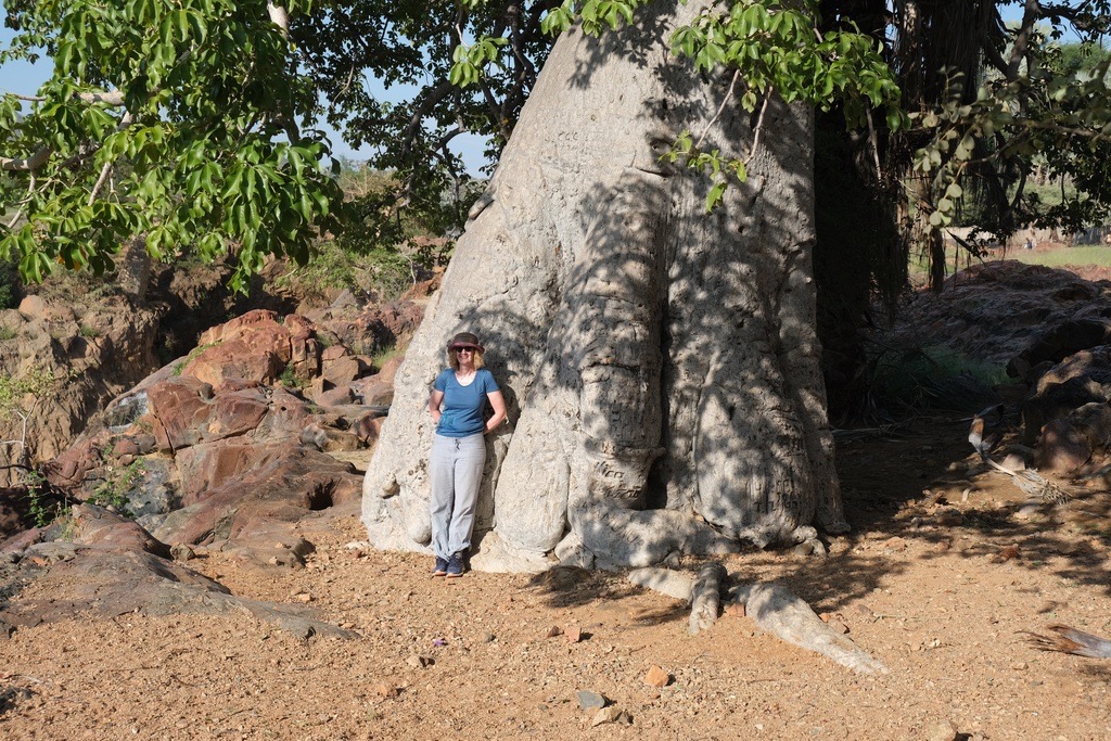 Nach einer kühlen Dusche hält es uns doch nicht lange innen, da die Falls schon deutlich zu hören waren. Also packten wir unsere Kamera ein und machten uns auf zu einem kleinen Wanderweg entlang des Flusses. Die Temperaturen sind gewöhnungsbedürftig. Nicht nur die Hitze sondern die zusätzlich hohe Luftfeuchtigkeit lassen uns schön langsam gehen. Auf dem Weg kommen wir an einigen Affenbrotbäumen vorbei (Baobab Baum).