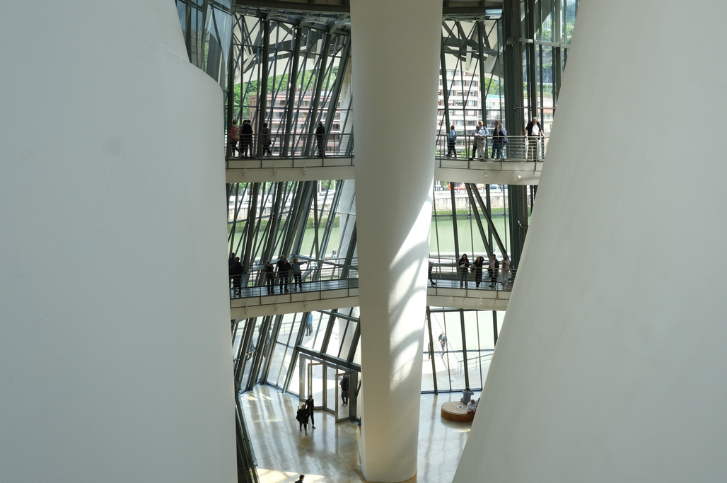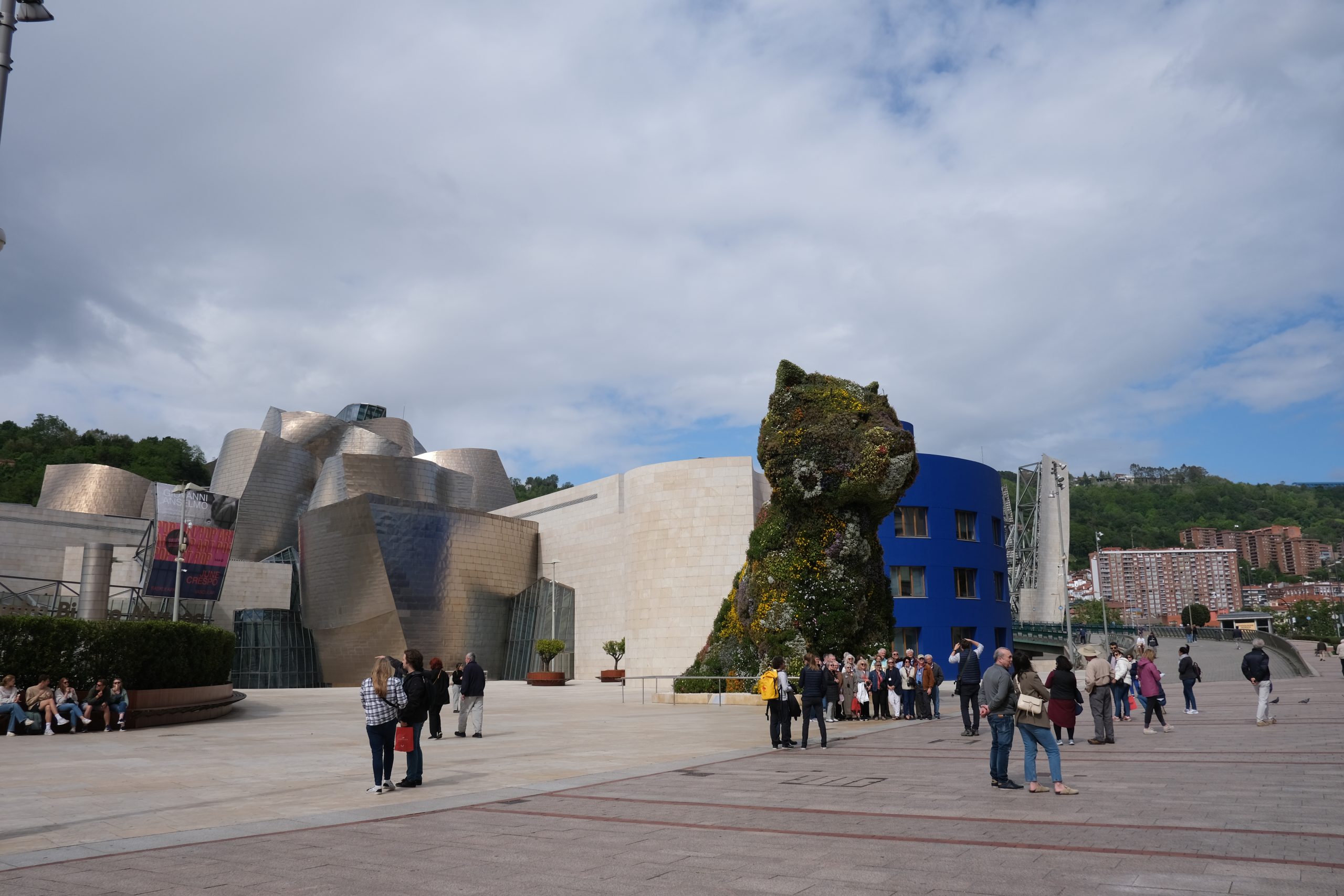 Bilbao ist eine Reise wert. Nach 2 Tagen können wir das einstimmig sagen. Nicht nur das Guggenheim- Museum in seinem Titanmantel und der tolle Mix der eng aneinandergereihten alten und modernen Baukörper lässt uns Staunen sondern auch diese quirlige lebhafte Atmosphäre mit den vielen Bars voller Menschen, die bei einem Glas Wein und den super leckeren Pintxos in einem irren schnellen Spanisch auf einander einreden….und wir glücklich mitten drin.